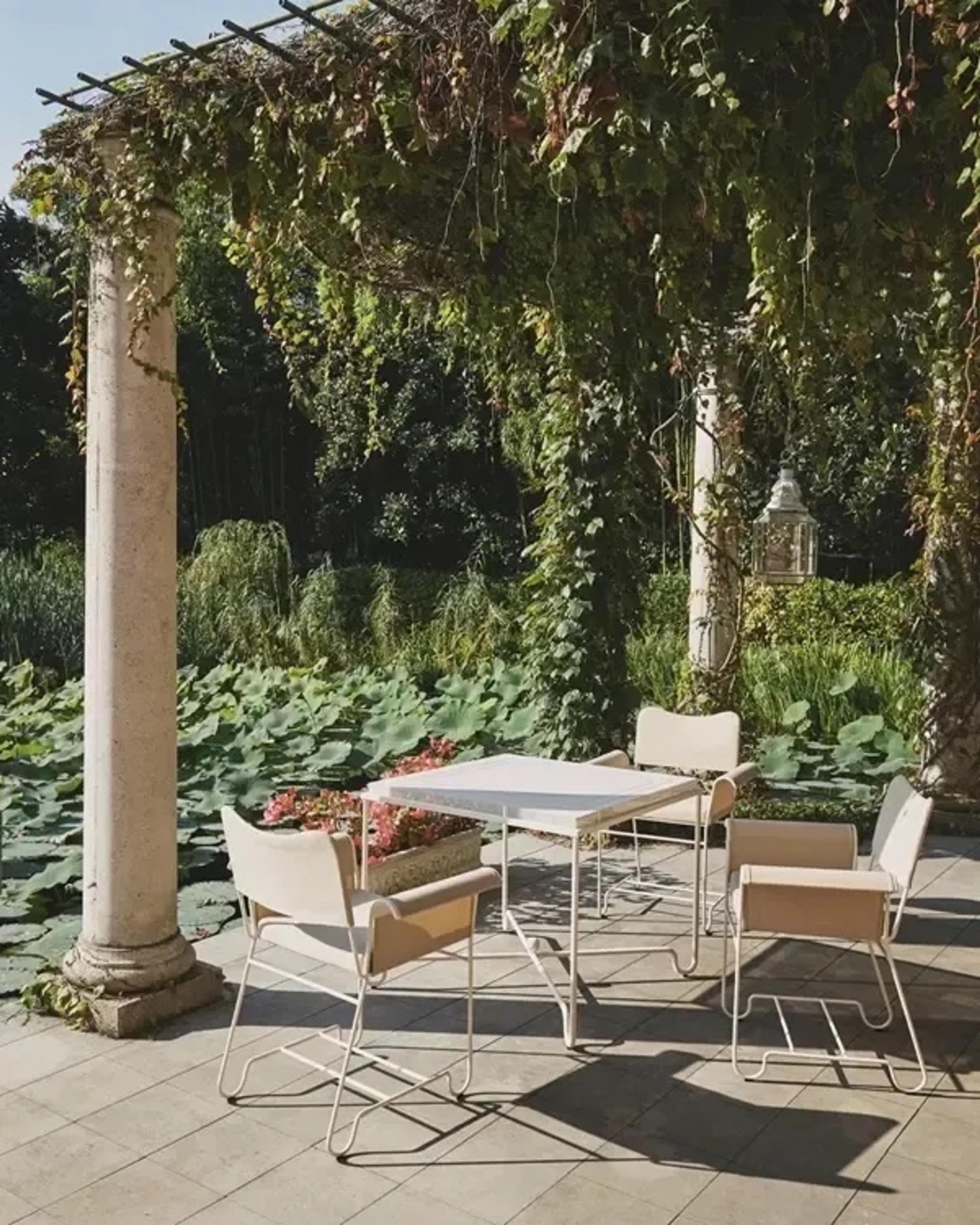 Сочетая простоту материалов с декадентской эстетикой, Tropique состоит из двух обеденных стульев и обеденного стола. Каркас каждого изделия изготовлен из прутьев из нержавеющей стали с характерным изгибом ножек – отличительной чертой стиля Matégot и особенностью, которая объединяет коллекцию в четкое и сплоченное целое.