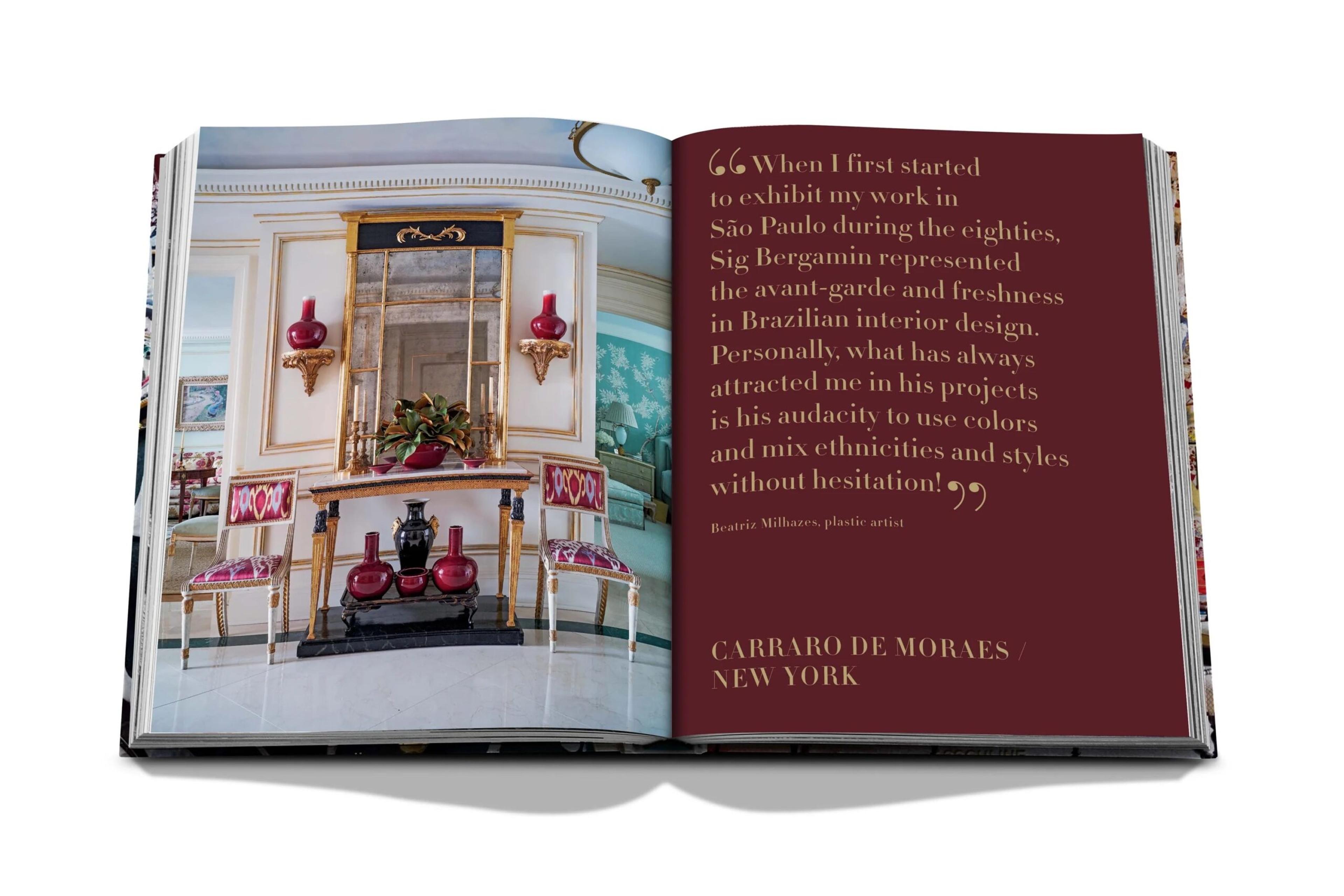 Смелый бразильский стиль архитектора и дизайнера Сига Бергамина отчетливо прослеживается в его ярких, эклектичных работах. Сам себя называющий “максималистом”, Бергамин постоянно путешествует и любит собирать сокровища со всего мира. Сочетая французскую и итальянскую мебель восемнадцатого и девятнадцатого веков с современными предметами из Северной и Южной Америки, его дизайн представляет собой изысканную смесь шика. В своем доме в Сан-Паулу Бергамин тщательно выбирает, какие подушки, чехлы и абажуры выставлены на всеобщее обозрение в зависимости от сезона. Он уделяет столько же внимания каждому дому клиента, над которым работает, объединяя разнообразные элементы в единое, самобытное целое.
