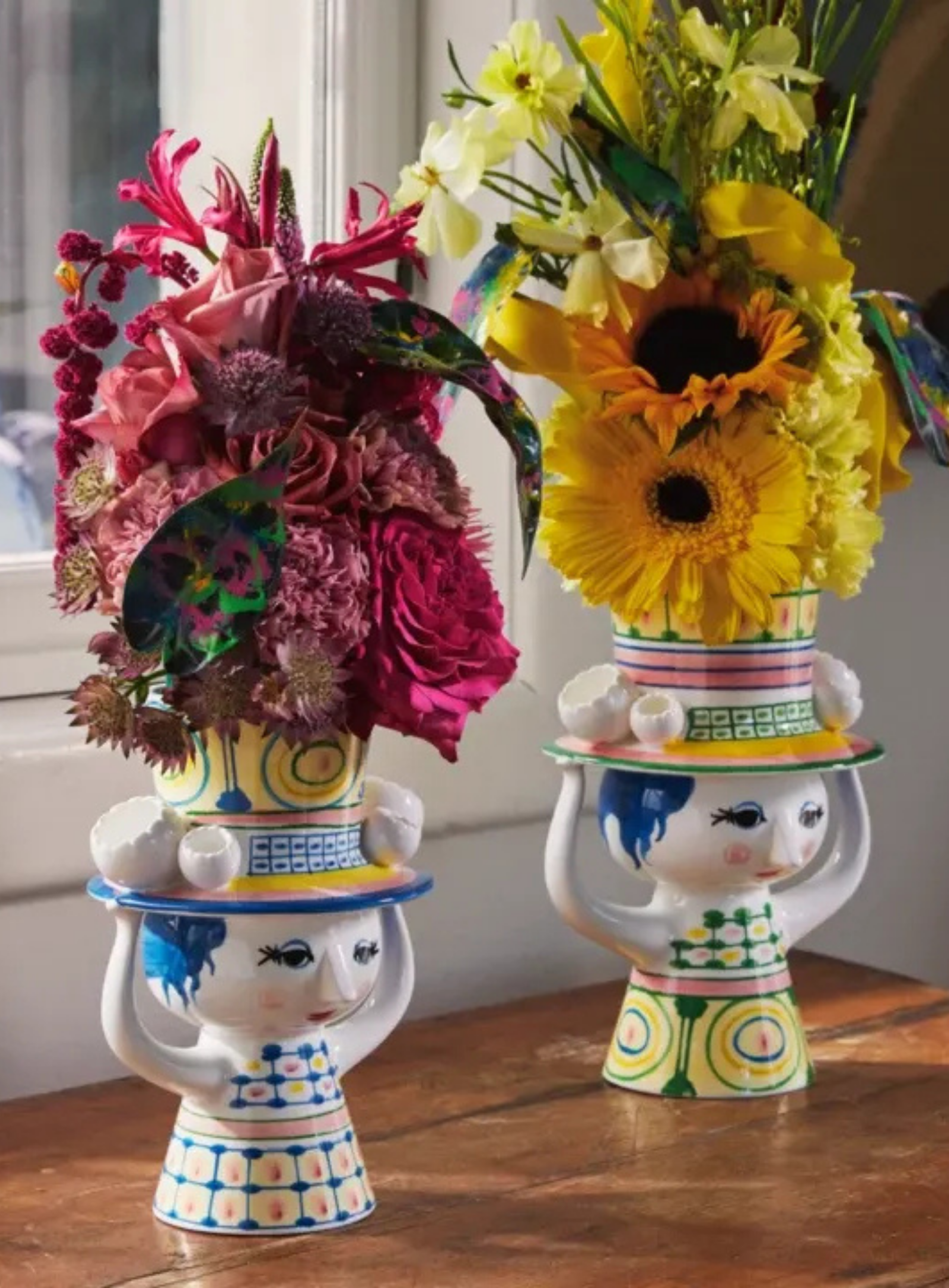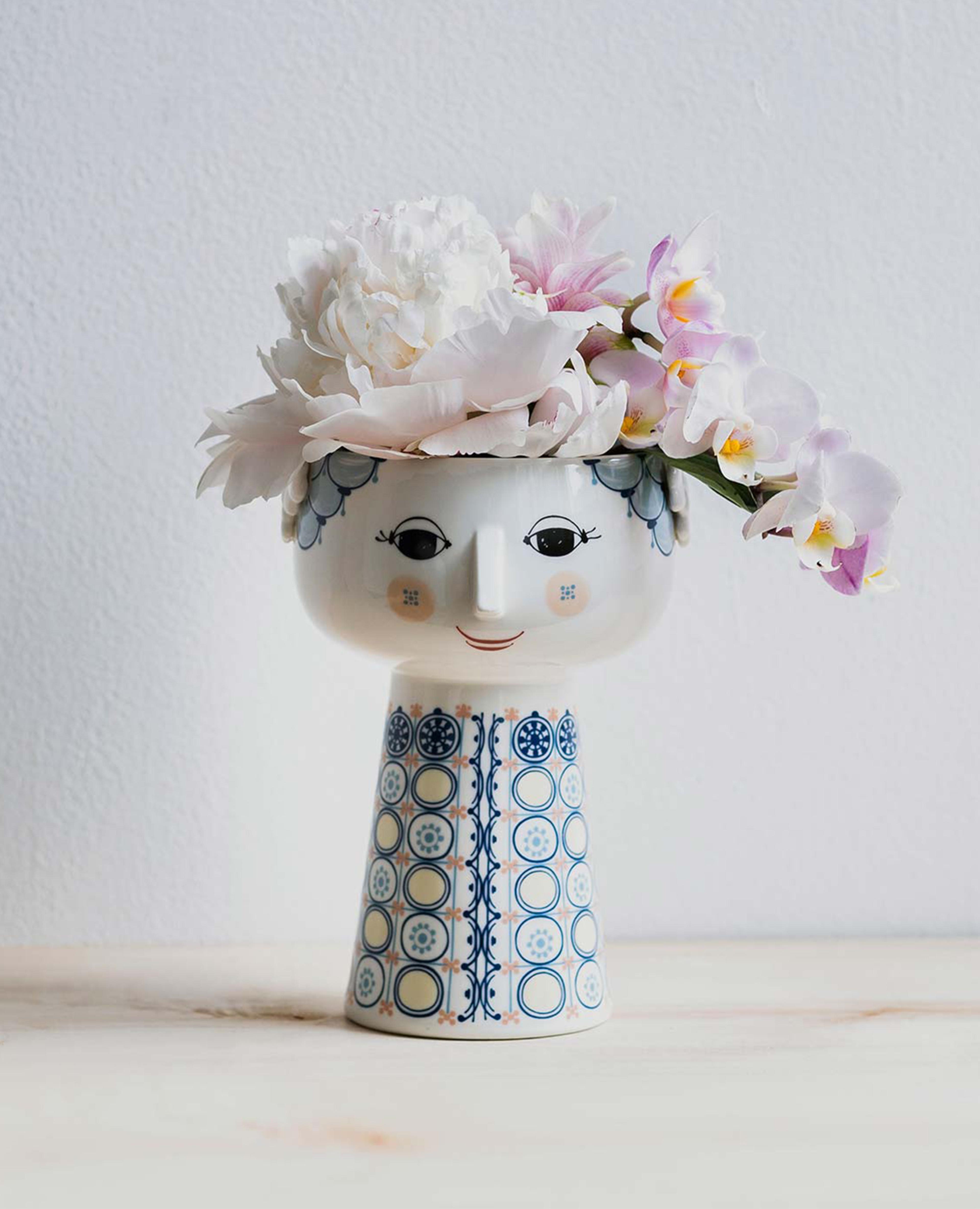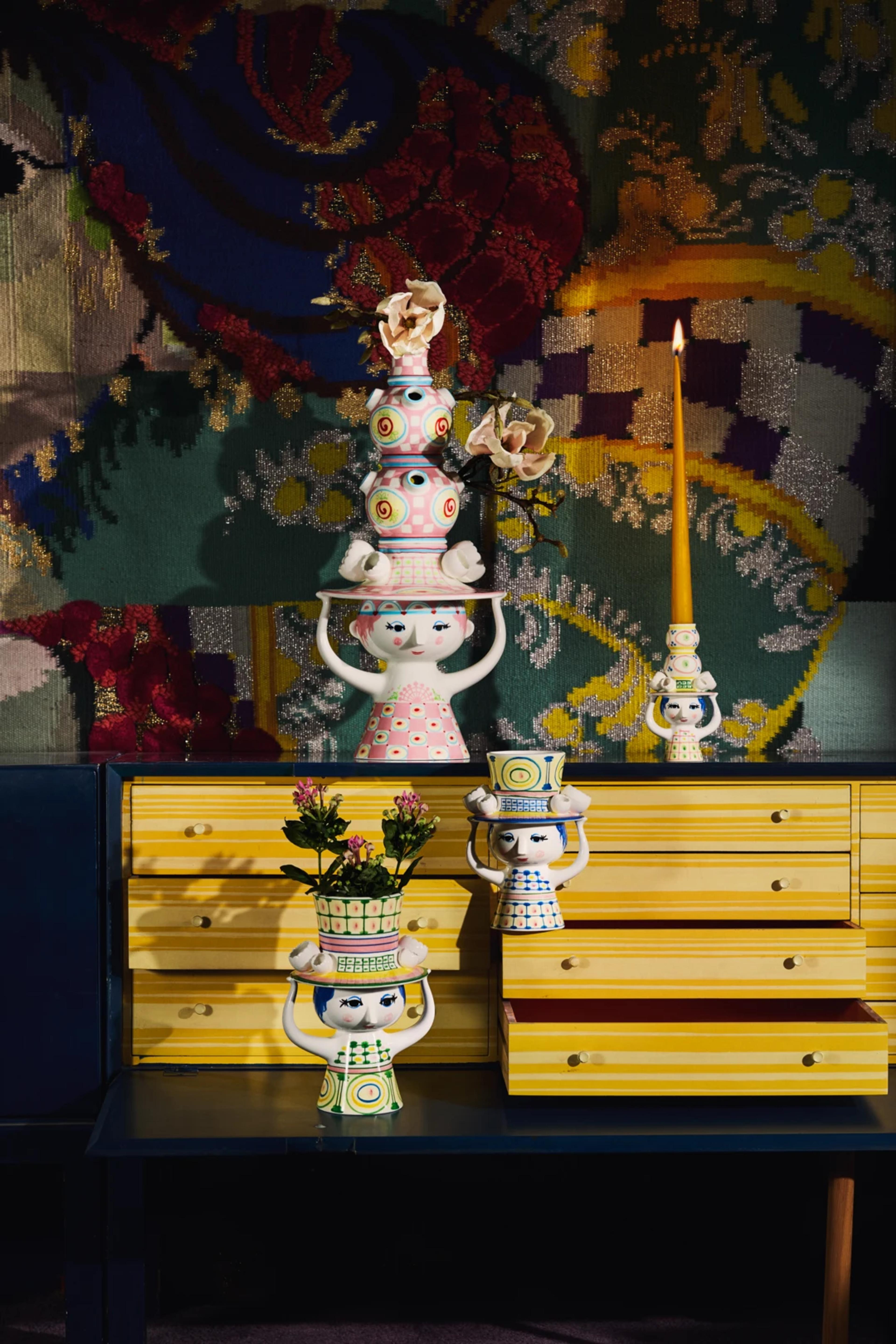 Ваза высотой не менее 50 см расписана вручную от верха до низа мотивами, вдохновленными разнообразным архивом Бьёрна Виинблада. И это не просто одна ваза. Ваза состоит из двух отдельных ваз, которые могут использоваться как вместе, так и по отдельности.